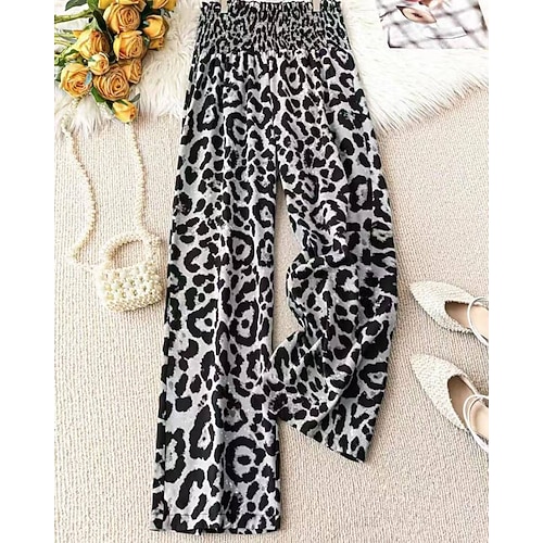 Per donna Culotte Gamba Larga Chinos Vacanza Streetwear Casual Lunghezza intera Vita media Leopardo Elastico in vita Confortevole Micro-elastico All'aperto Vacanza Quotidiano Giallo Caffè Grigio