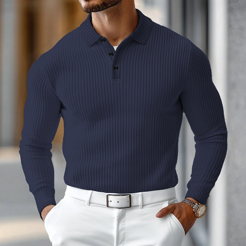 Men's Rib Knit Top Textured Business Casual Ribbed Polo Collar Long Sleeve Fashion Basic Solid Color Knitting Fall Winter Slim Fit Dark Grey Black White Burgundy Navy Blue Dark Green Rib Knit Top