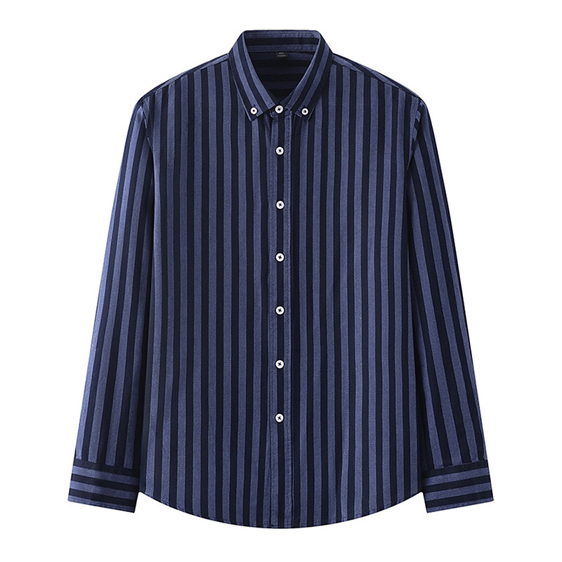 Men's Oxford Shirt Black Navy Blue Green Light Grey Dark Grey Long Sleeve Striped Vertical Stripes Button Down Collar School Wedding Buttons Clothing Apparel Neutral Fashion Daily