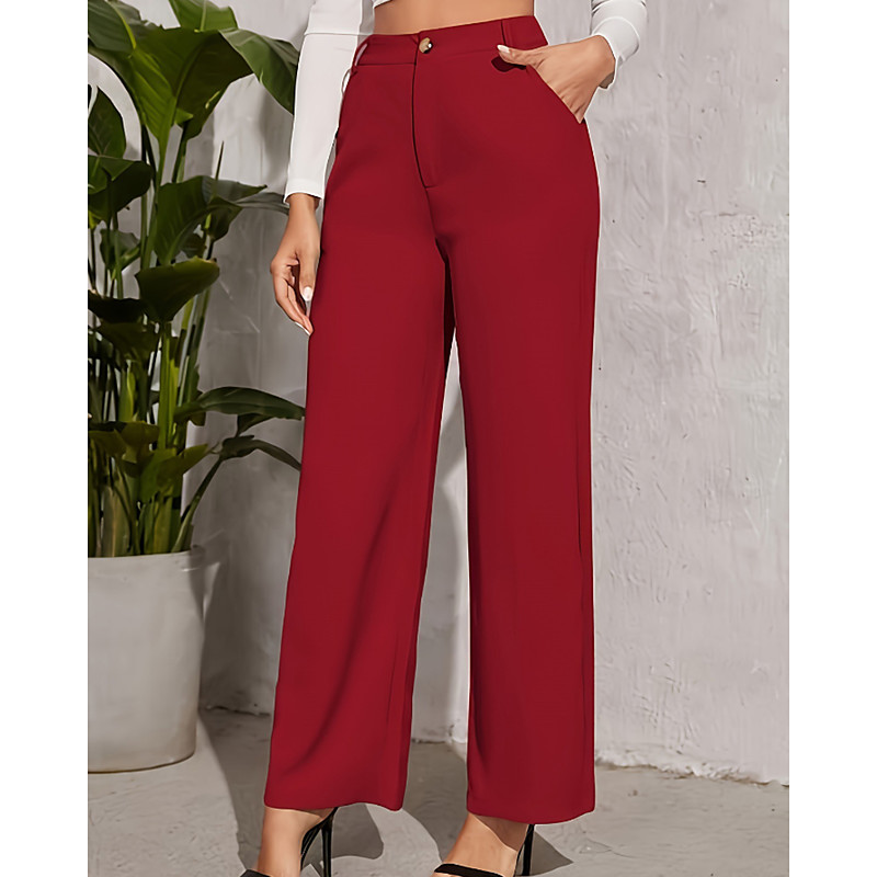 Women's Wide Leg Slacks Streetwear Casual Full Length Natural Plain Pocket Elastic Waist Comfortable Outdoor Holiday claret Depression Green Grey Black Fall Regular Fit
