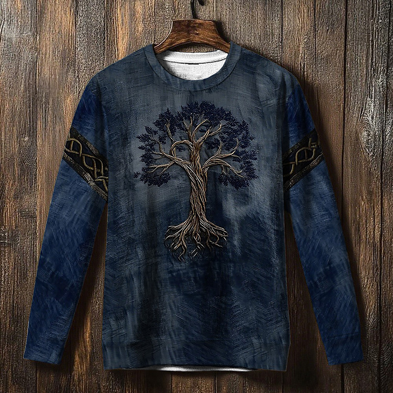 Men's Sweatshirt Blue Brown Green Khaki Crew Neck Tree Of Life Yggdrasil Celtic Knot Print Casual Daily Holiday Vintage Viking Fall Winter Clothing Apparel Hoodies Sweatshirts