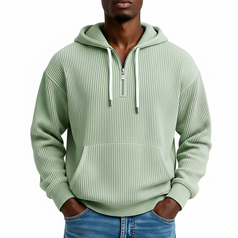 Men's Hoodie Corduroy Pullover Quarter Zip Hoodie Apricot White Purple Green Light Grey Hooded Plain Kangaroo Pocket Textured Casual Daily Sports Outdoor Streetwear Cool Sportswear Spring Fall