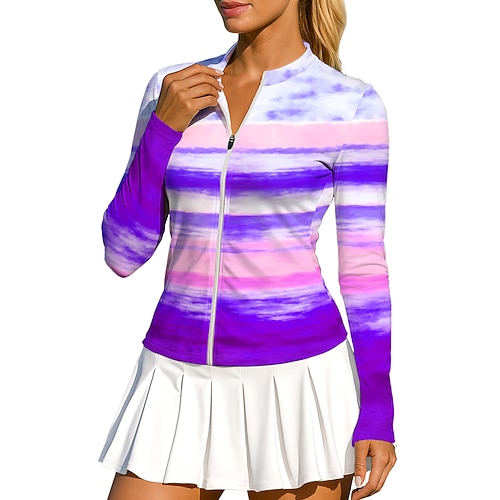 Per donna Geometrico Sfumatura A righe Top Maglietta sportiva Maglia da tennis Manica Lunga Cerniera Floreale UPF50 Resistente ai Raggi UV Alta elasticità Traspirante Pallavolo Tennis Golf Il giro
