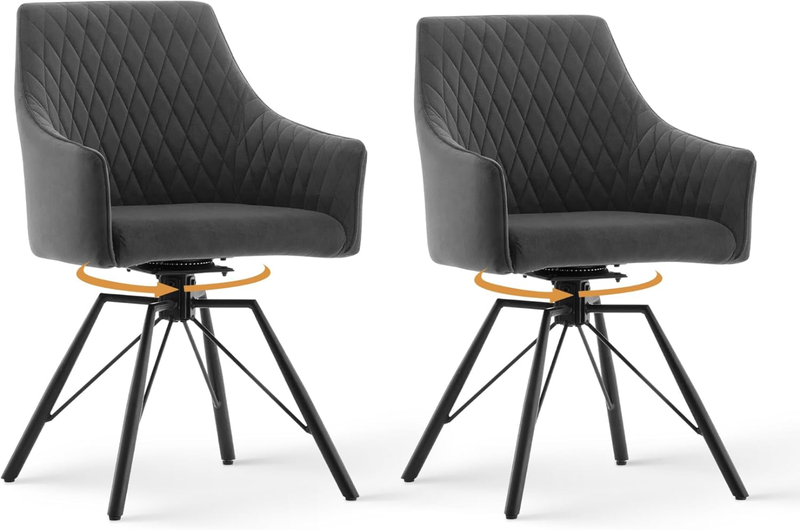 CLIPOP Swivel Dining Chairs Set of 2 Velvet with 360 Rotating Metal Base, Padded Kitchen Armchair for Living Room Accent (2,grey)