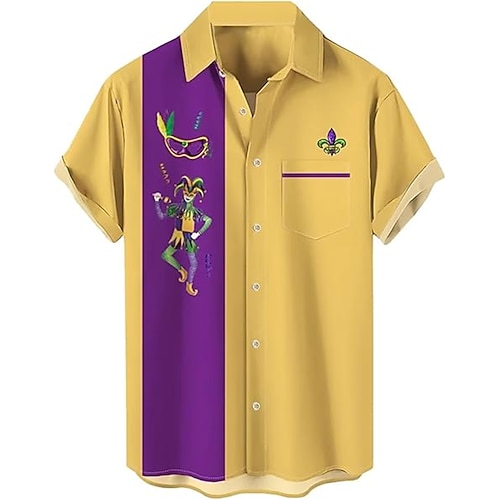 Mardi Gras Mardi Gras 2026 Clown Jester Carnival Blouse / Shirt Hawaiian Shirts Novelty Funny Adults' Men's Carnival Mardi Gras Casual Party Easy Carnival Costume Dress Up