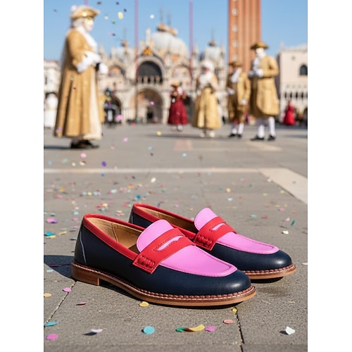 Damen Mardi Gras Bunte Slipper mit auffälligem roten und blauen Design – Bequeme Mode für Karneval festliche Outdoor-Events