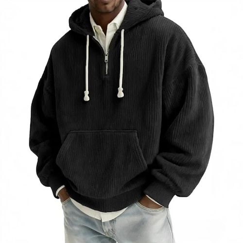 Per uomo Felpa con cappuccio Velluto a coste Felpa con cappuccio e zip corta Aalbicocca Rosso bordeaux Nero Bianco Blu marino Con Cappuccio Semplice Tasca a marsupio Testurizzato Casuale Quotidiano