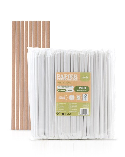 Sovie Trinkhalm in Naturbraun einzeln verpackt aus Papier, Ø 8 mm / 23 cm, 200 Stück in Folienbeutel