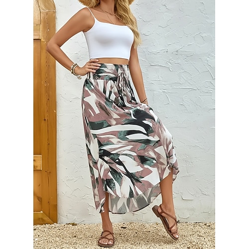 Per donna Gonna da vacanza Elegante Bohemien Moda Casual Maxi Vita media Gonne Grafico Coulisse Elastico in vita Orlo irregolare Micro-elastico Quotidiano Vacanza Blu Bianco Giallo Blu marino Estate