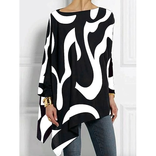 Per donna Maglietta Grafico Geometrico Astratto Vintage Elegante Casual Manica Lunga Girocollo Top lunghi Quotidiano Stampato Asimmetrico Nero Bianco Giallo Rosso Primavera Autunno