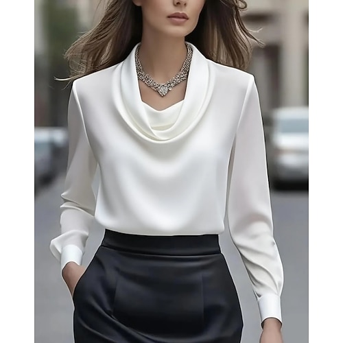Per donna Elegant Elegante Raso/Satin Blusa Semplice Elegante Lavoro Manica Lunga Scollo a Cascata Top Regolari Nero Bianco Albicocca Autunno