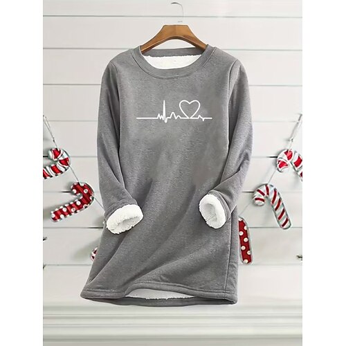 Per donna Felpa Pullover Cuore Grafico Caldo Casual Morbido Manica Lunga Girocollo Top Regolari Streetwear Casuale Rosa chiaro Nero Giallo Rosso Blu Primavera Autunno Inverno