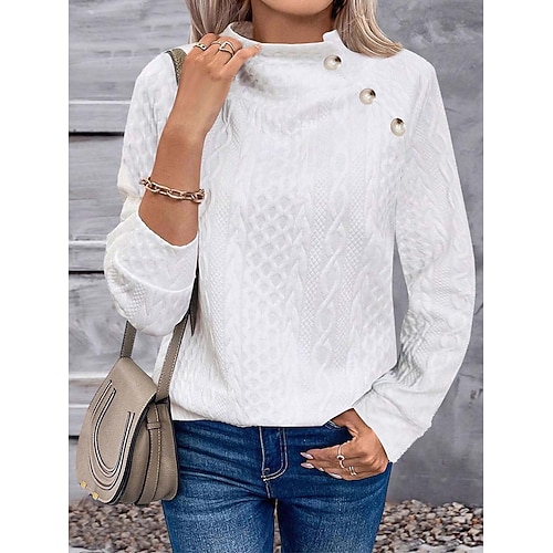 felpa da donna elegante moda carina tinta unita collo alto bottoni strutturato manica lunga normale top maglia esterno casa lavoro nero bianco primavera autunno