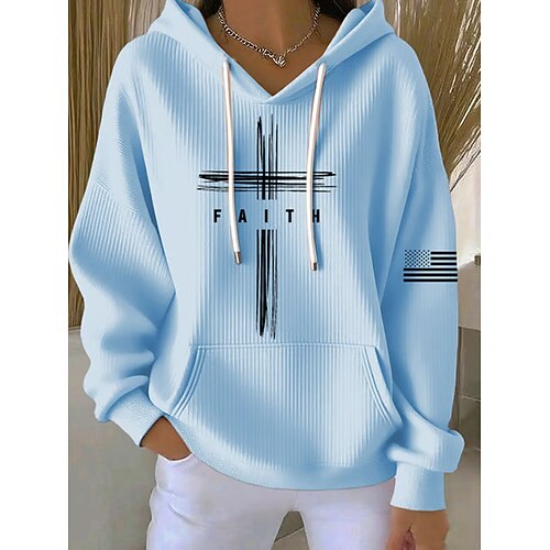 Per donna Felpa con cappuccio Grafico Lettera Casual Manica Lunga Con Cappuccio Top Regolari Abbigliamento Quotidiano Casuale Sportivo Blu Nero Rosa Rosso Autunno Inverno