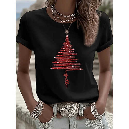 Natale Per donna Maglietta Grafico Natale Vintage Elegante Classico Manica Corta Girocollo Top Regolari Quotidiano Stampato Nero Bianco Rosa Arancione Verde Estate Primavera Autunno Inverno