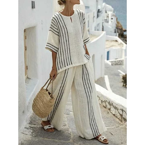 Per donna Moda Streetwear Set di Pantaloni Bolero Top Manica Corta Girocollo A righe Stampato Casuale Quotidiano All'aperto Blu Nero Rosso Estate Vestibilità comoda