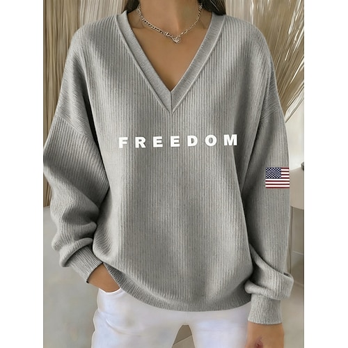 Giorno dell'Indipendenza Americana Per donna Maglietta Bandiera Americana Elegante Classico Manica Lunga Collo quadrato Top Regolari Quotidiano Blu Nero Bianco Rosso Grigio Autunno