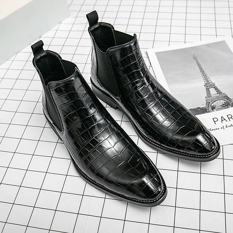 Men's Brown Crocodile Pattern Chelsea Boots – Faux Leather Ankle Boots with Elastic Side Panels, Vintage Style Dress Boots for Office and Evening Wear
