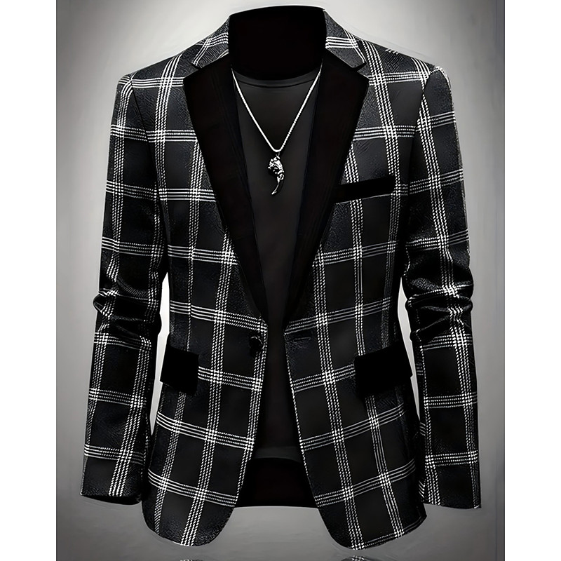 Men's Blazer Formal Evening Wedding Party Birthday Party Fashion Casual Spring Fall Polyester Plaid / Check Geometry Pocket Casual / Daily Single Breasted Blazer White