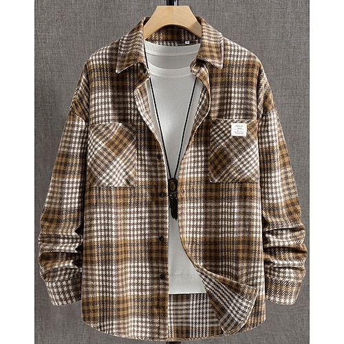 Herren Hemd Flanelljacke Flanell Hemden Overshirt Plaid Outdoor Strasse Schwarz Wein Grün Hell Gray Langarm Winter Frühling Herbst Bekleidung
