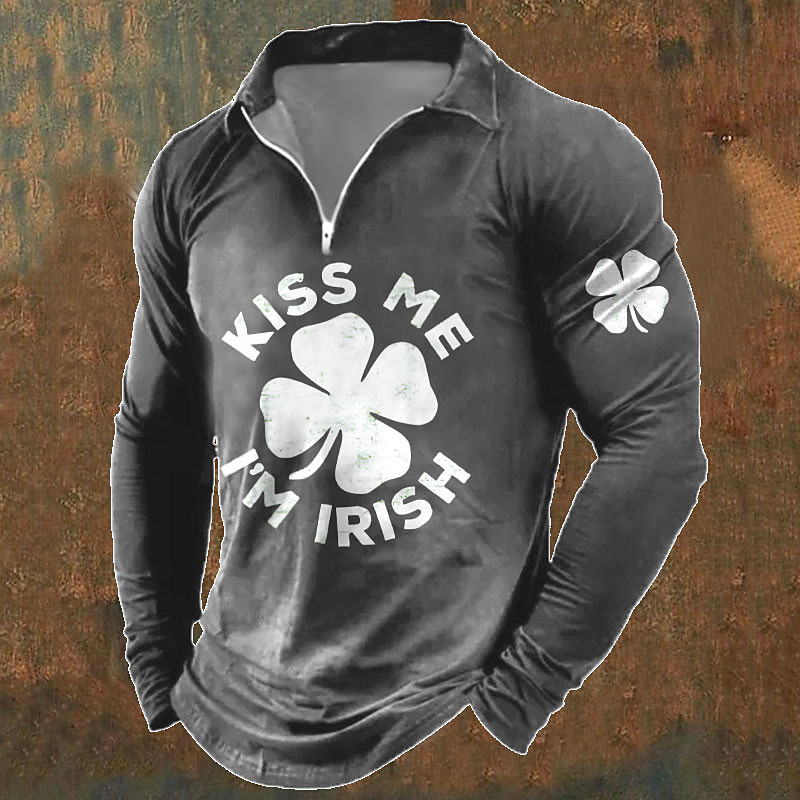 St. Patrick Men's Four Leaf Clover Saint Patrick Day Polo Polo Shirts Zip Polo Long Sleeve Polo Shirts Turndown Zip Casual Outdoor St.Patrick's Day Casual Daily Streetwear 3D Print Spring Summer