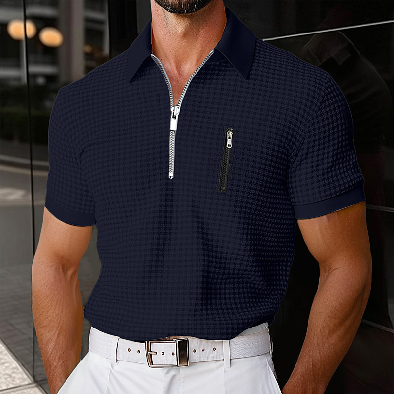 Men's Waffle Polo Shirts Zip Polo Casual Holiday Lapel Quarter Zip Short Sleeve Fashion Basic Plain Quarter Zip Summer Regular Fit Yellow Navy Blue Green Waffle Polo Shirts
