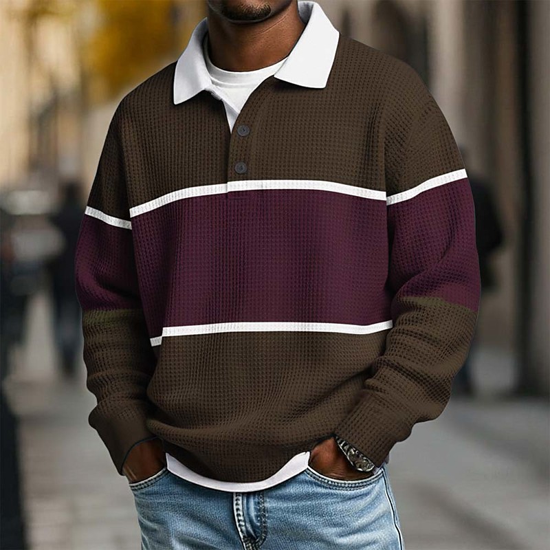 Men's Horizontal Stripes Waffle Polo Shirts Rugby Polo Long Sleeve Polo Shirts Lapel Sportswear Casual School Athleisure Daily Wear 3D Print Spring Fall Winter Blue Purple Brown