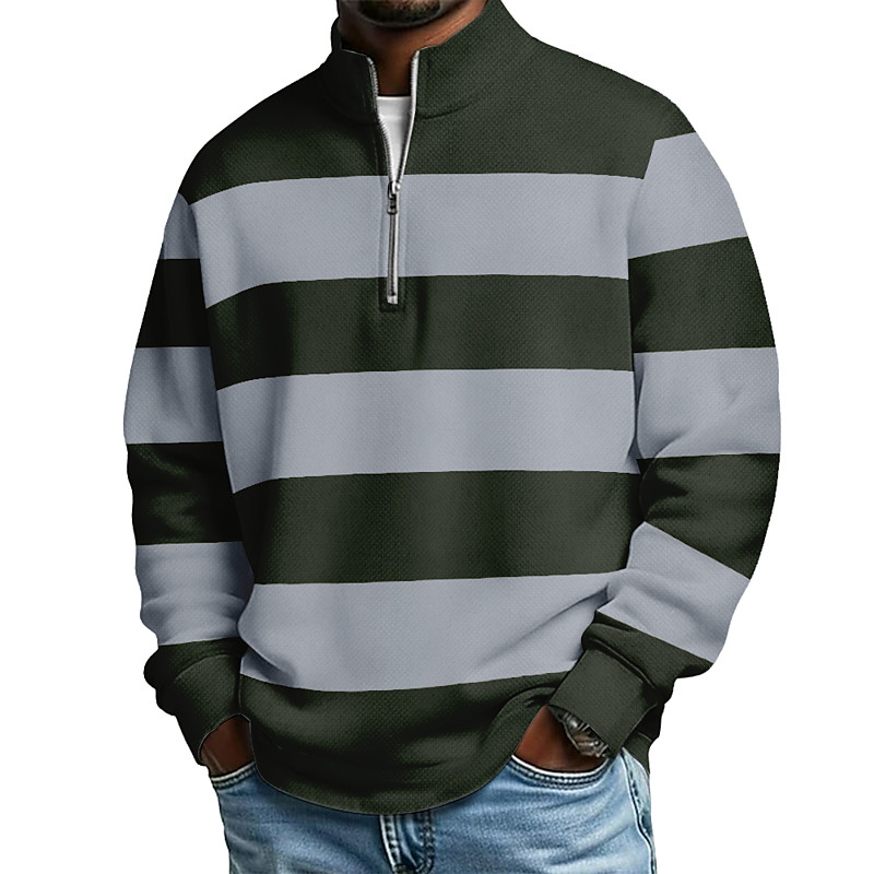 Men's Horizontal Stripes Zip Polo Shirts Long Sleeve Polo Shirts Grandad Collar Casual School Athleisure Holiday Daily Wear 3D Print Quarter Zip Polo Spring Fall Blue Brown Green