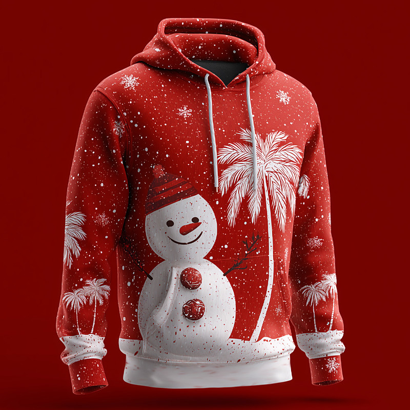 Christmas Men's Santa Claus Snowman Hoodie Sweatshirt Fashion Daily Crew Neck Home Party Gift Red 3 Red Drawstring Fall Winter Designer