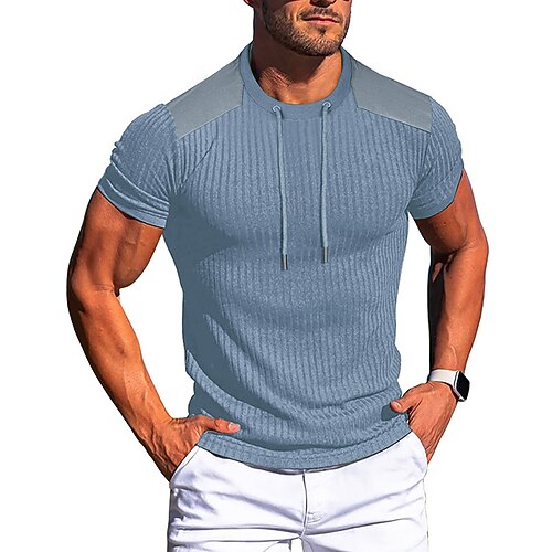 Per uomo Maglietta Camicia a Maniche Corte Manica Corta Girocollo Estate Primavera Tinta unica Streetwear Elegante Sportivo Patchwork Casuale Quotidiano All'aperto Blu Rosso violaceo Grigio scuro