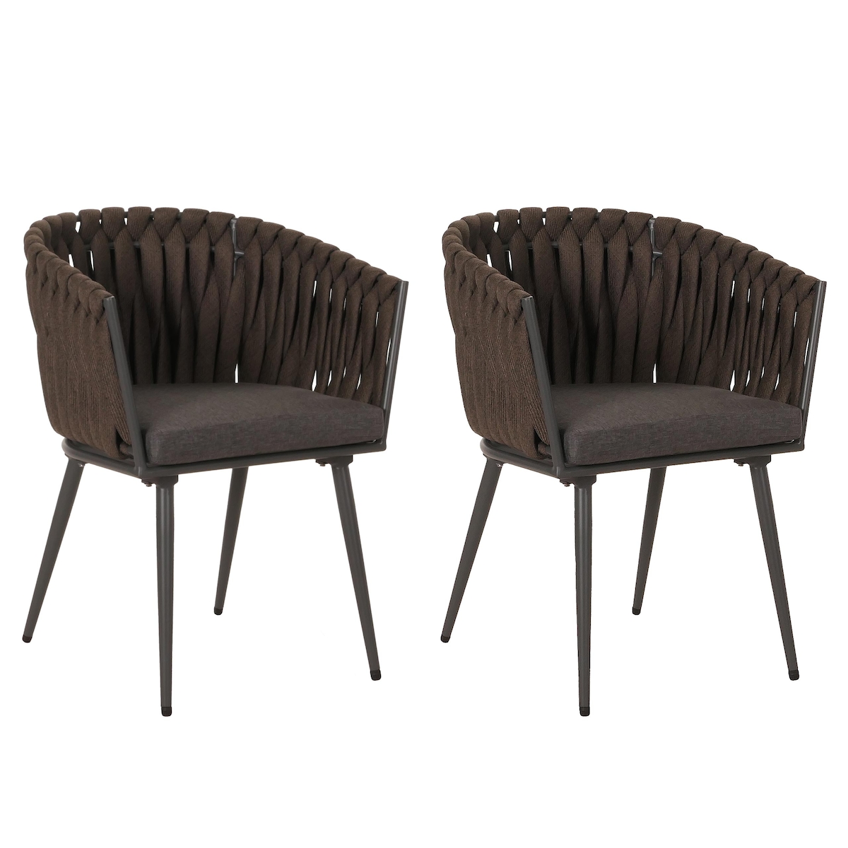 Mendler 2er-Set Aluminium-Gartenstuhl HWC-N38, Outdoor Stuhl Armlehne, Olefin Seilgeflecht Rope ~ braun Kissen dunkelgrau