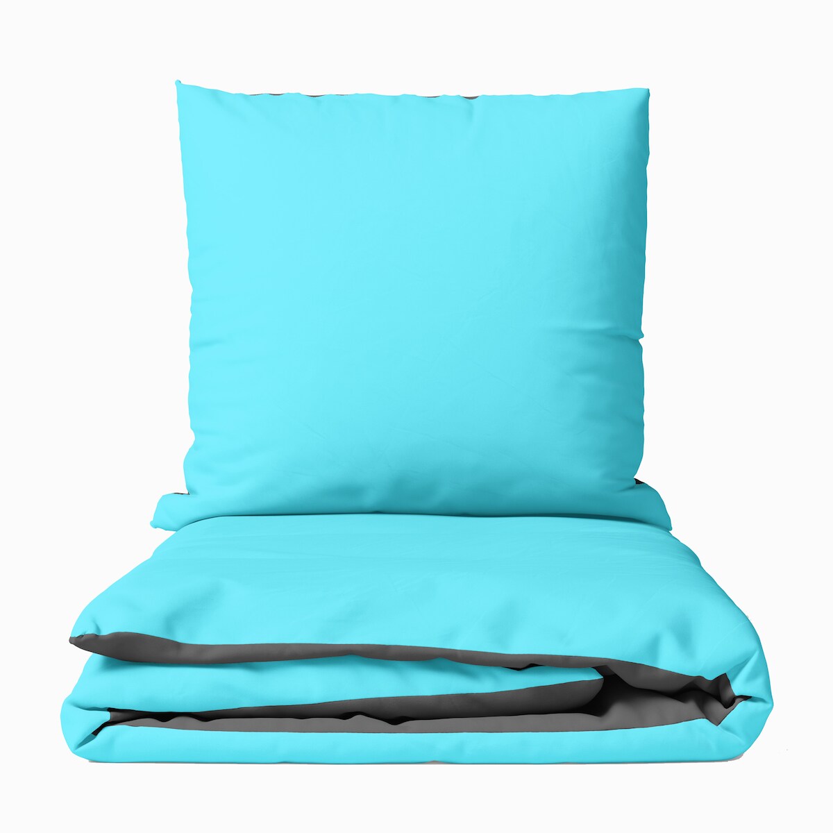Leonado Vicenti Bettwäsche 155x200 cm Petrol Anthrazit Mikrofaser Uni Wendeseite Reißverschluss 4 tlg