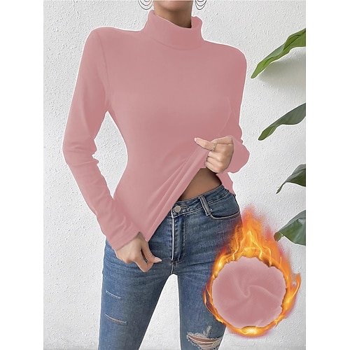 Per donna Blusa Tinta unica Elegante Essenziale Casual Manica Lunga Dolcevita Top Regolari Quotidiano Nero Bianco Giallo Rosa Marrone Primavera Autunno Inverno