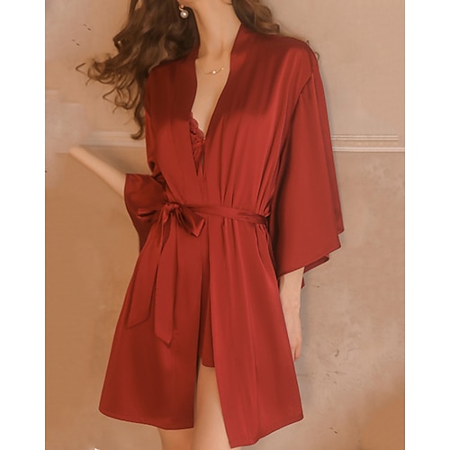 Per donna Pigiama Accappatoio Sexy Casual Morbido Colore Puro Allacciato Quotidiano Casa Da letto Manica Lunga Spalline Nero Bianco Vino Oro Grigio scuro Estate Primavera Vestibilità regolare