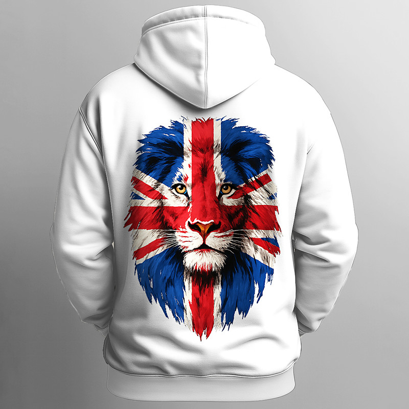 Men's Flag Lion UK Hoodie Sweatshirt Sports Fashion Long Sleeve Crew Neck Outdoor Office Streetwear Black White Blue Drawstring 3D Fall Winter Designer S M L XL XXL XXXL