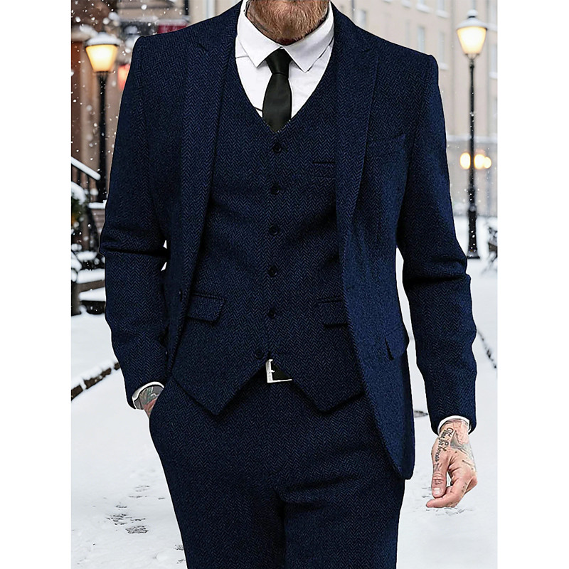 Men's BlazerVestDress Pants Blazer Suits Business Work Wedding Fashion Streetwear Fall Winter Nylon Solid Color 3-Piece Single Breasted Blazer Black Burgundy Navy Blue Royal Blue