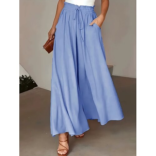 Per donna Culotte Gamba Larga Pantaloni Eleganti Pantaloni Streetwear Casual Lunghezza intera Naturale Semplice Tasca Elastico in vita Comodo All'aperto Confortevole Vacanza Streetwear Aalbicocca Blu