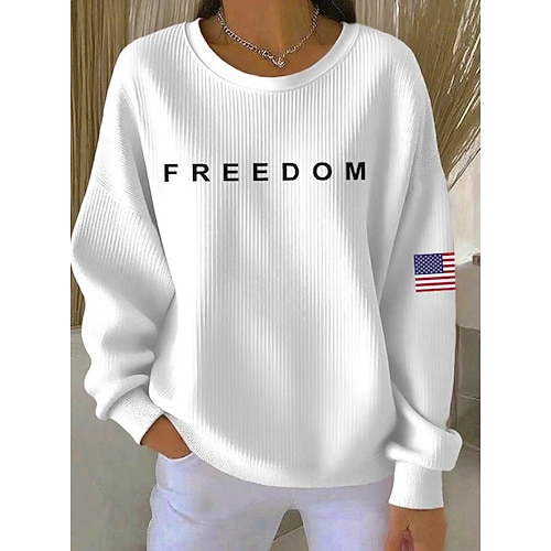 Giorno dell'Indipendenza Maglione Pullover Testurizzato Patriottico da Donna Stampa Grafica Geometrica Casual Maniche Lunghe Collo A Giro Top Regolari Casual Casa Strada Blu Nero Bianco Rosso Grigio