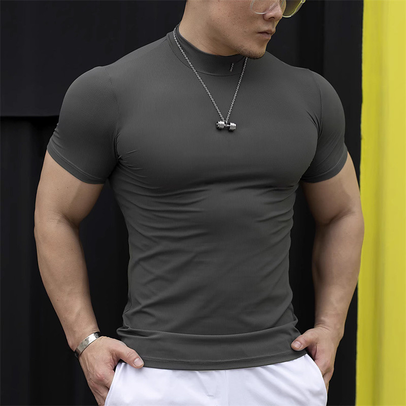 Men's Gym Shirt Compression Shirt Fitness Shirt Crew Neck Short Sleeves Casual Daily Gym Quick dry High Stretch Sweat wicking Patchwork Plain Light Green Dark Grey non-printing Activewear Polyester