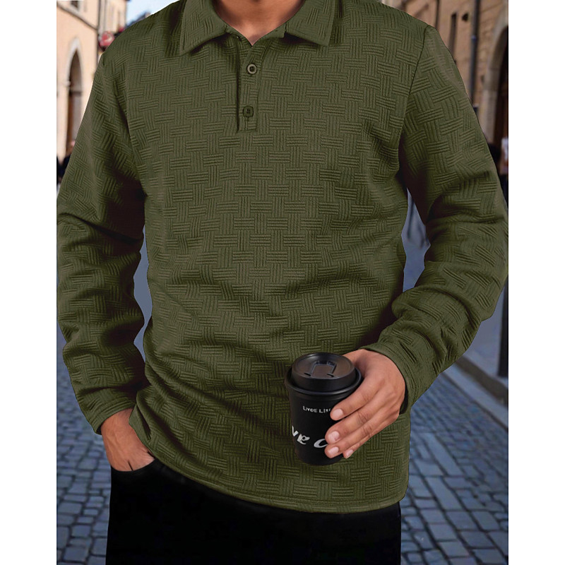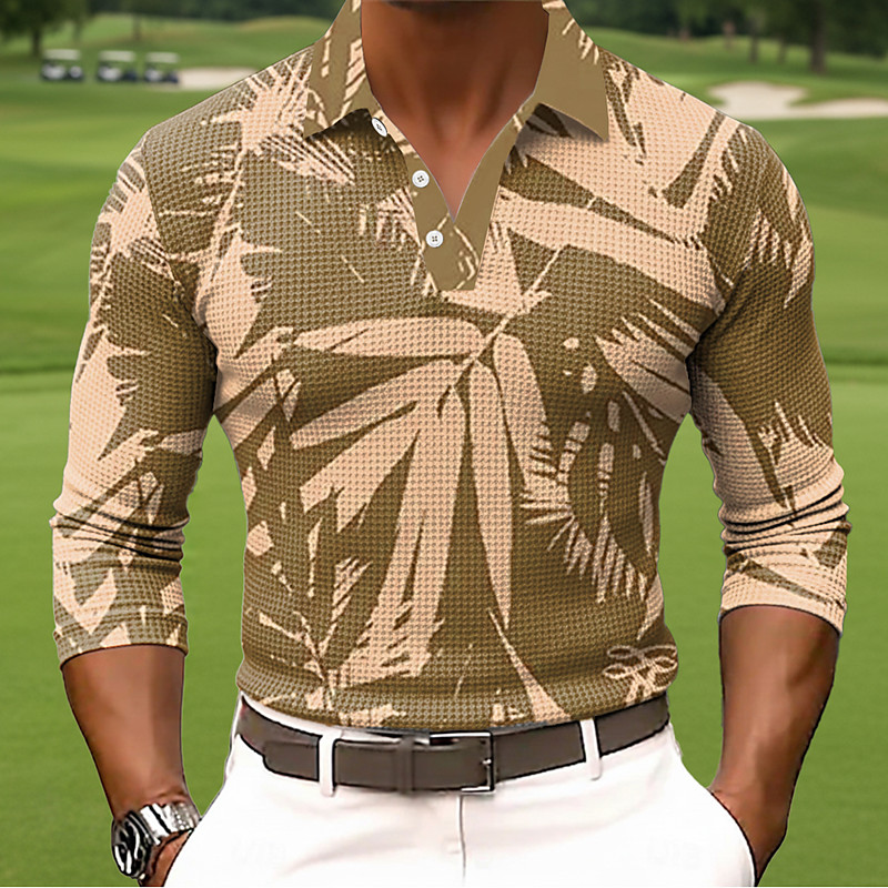 Men's Leaf Waffle Polo Shirts Long Sleeve Polo Shirts Collared Shirts Business Casual Business Wear to work Daily Wear Buttons Spring Fall Winter Blue Brown Green