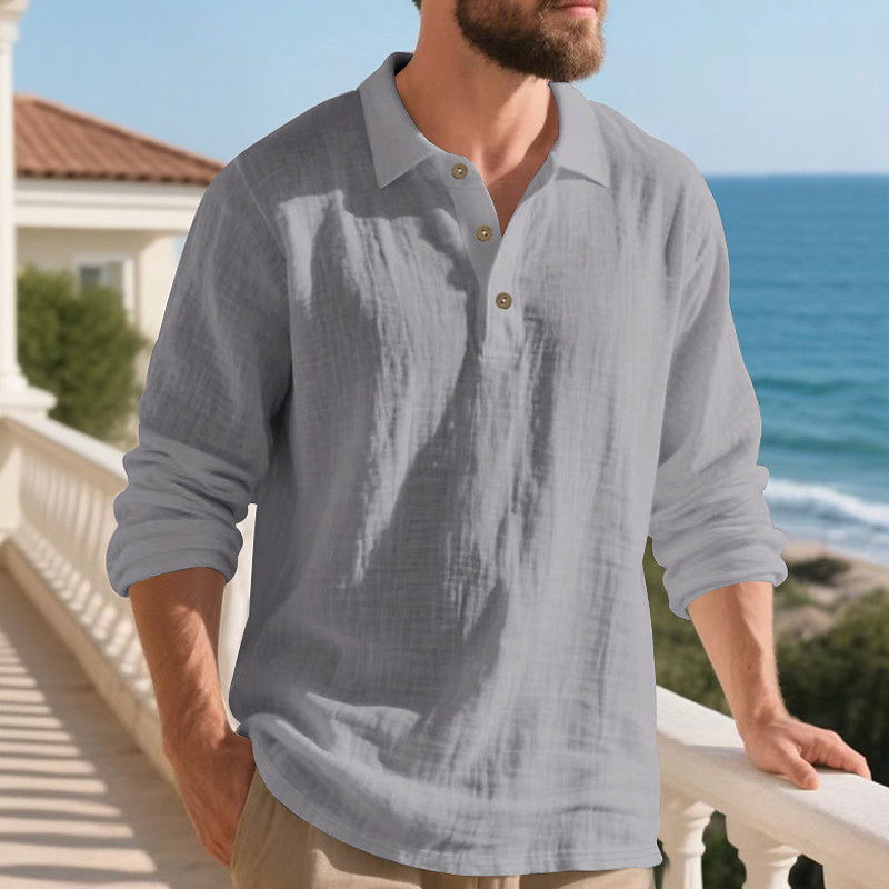 Men's Linen Shirt Golf Shirt Work Casual Lapel Long Sleeve Basic Modern Plain Buttons Spring Fall Regular Fit Black White Navy Blue Khaki Army Green Light Blue Linen Shirt