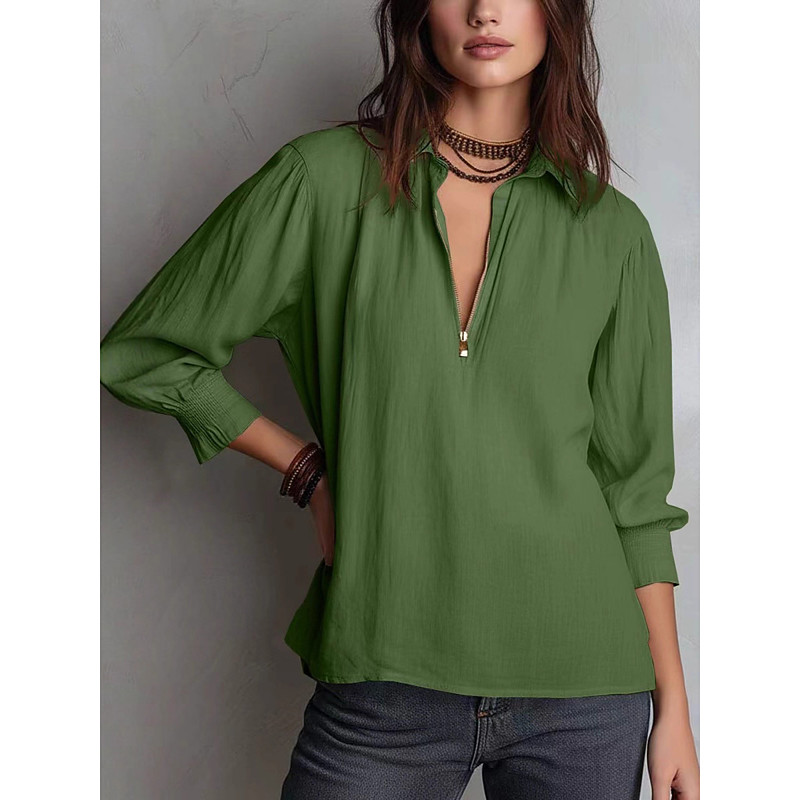 Women's Blouse Solid Color Elegant Stylish Basic Long Sleeve V Neck Regular Tops Daily Work Blue Black Red Green Beige Spring Fall Winter