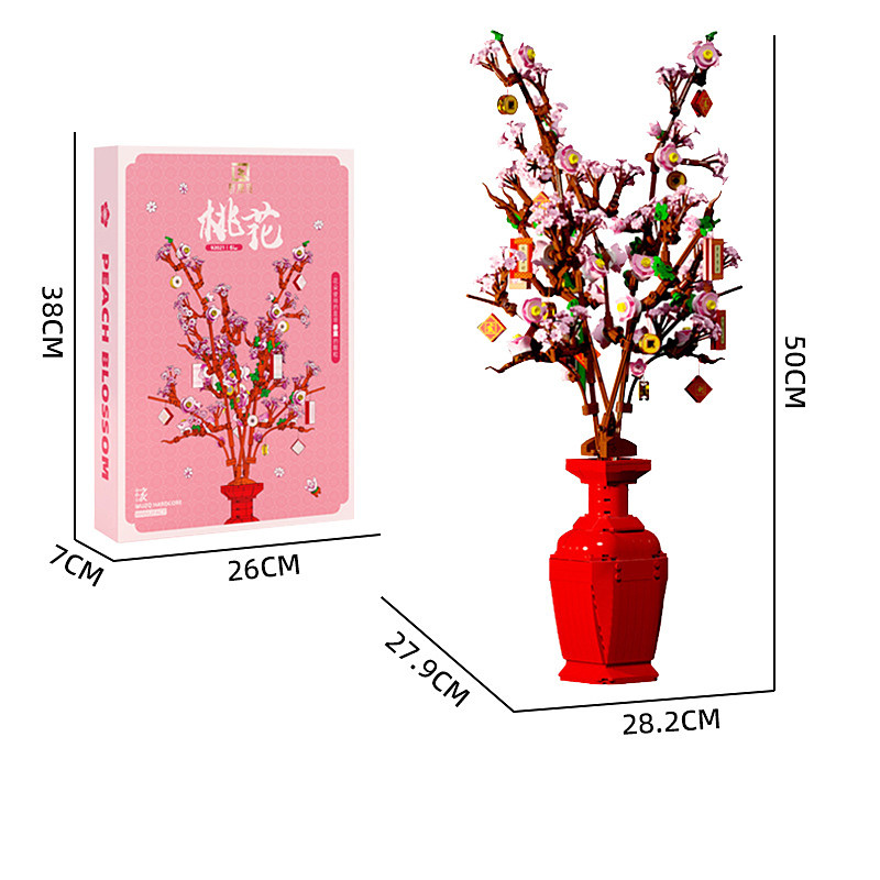 Build Your Own Exquisite Peach Blossoms Bouquet Home Decoration - Puzzle Building Blocks for Kids 8 Christmas Gift