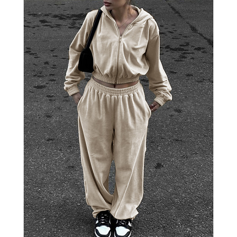 Women's Sweatpants 2 Piece Tracksuit Sportswear Wide Leg Solid Colored Clothing Suit Fall Black White Outdoor Travel Sports Moisture Wicking Long Sleeve Sport Activewear Micro-elastic Regular Fit