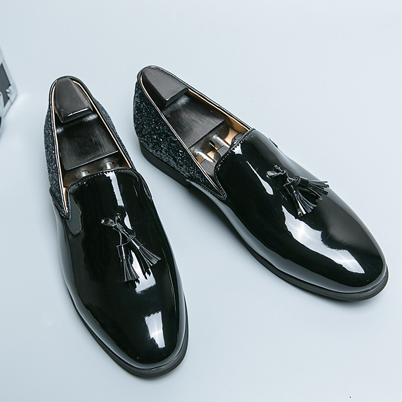 Men's Mardi Gras Gold and Glitter Slip-On Loafers – Sparkling Formal Shoes for Special Occasions, Parties and Carnival Celebrations