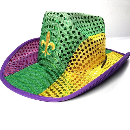 Mardi Gras 2026 Karneval Hut Cosplay Pailletten Mardi-Gras-Farben Erwachsene Herren Damen Karneval Fetter Dienstag Karnevalsparade Party Leistung Einfaches Karnevalskostüm Verkleiden