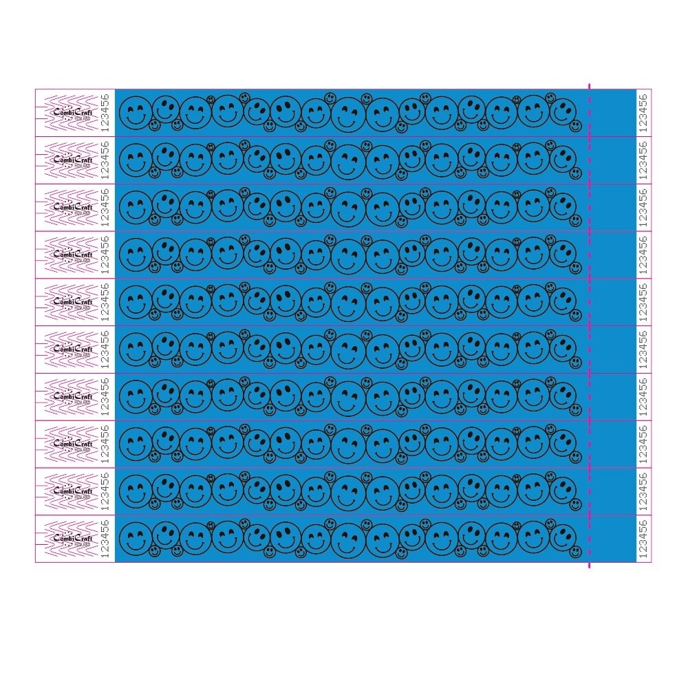 CombiCraft Tyrex Eintrittsband mit Smiley-Motiv in Neon Blau - 100 Stück