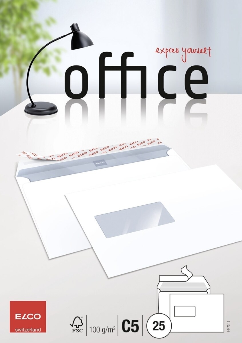 ELCO Briefumschläge C5 hochweiß Haftklebung Fenster links mit Innendruck 100 g/qm VE=20x25 Stück