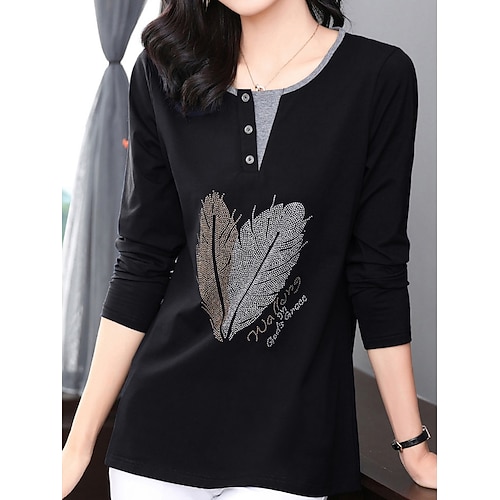 Per donna maglietta Floreale Di tendenza Manica lunga Rotonda Top regolari Giornaliero Fine settimana Bottoni Stampa Nero Vino Blu Verde Primavera Autunno