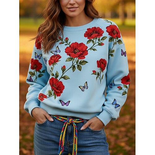 Per donna Pullover Felpe Floreale Moda Streetwear Classico Manica Lunga Girocollo Top Regolari Abbigliamento Quotidiano Casuale Stampato Blu Nero Verde Primavera Autunno